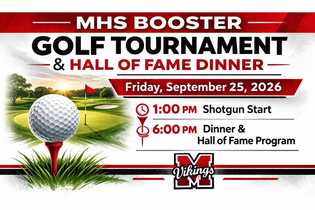 Join us on Friday, September 25, 2026 for the MHS Booster Golf Tournament & Hall of Fame Dinner! A full day of golf, community, and Viking pride in support of Montgomery 7th-12th grade student-athletes.